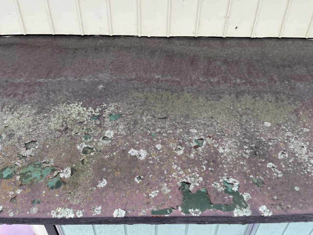 特に北側や日陰部分では、水分が乾きにくく、苔が発生することがあります。苔自体が直接金属を腐食させるわけではありませんが、水分を長時間保持することでサビの発生リスクを高めます。塗膜が傷んだ箇所から赤サビが広がると、穴あきにつながる恐れもあるでしょう。