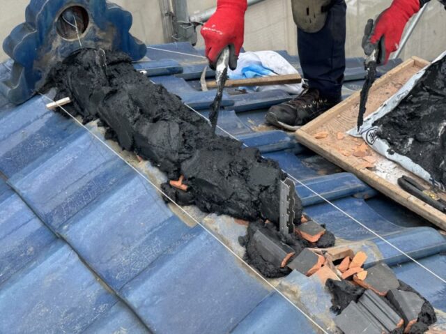 もう一つは棟全体の積み直し(棟取り直し)です。既存の棟瓦をすべて解体し、新しい漆喰で積み直す工事で、費用は高くなりますが、長期的な耐久性が期待できます。