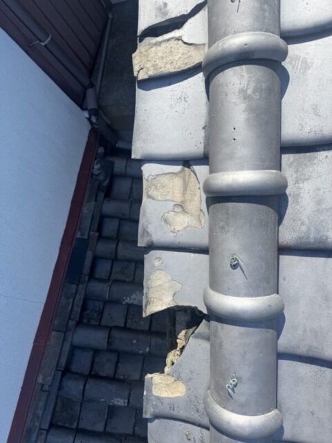 凍て割れは、見た目では気づきにくい瓦屋根の劣化のひとつです。小さなひびや欠けから始まりますが、放置すると雨水が侵入し、下地腐食や室内の雨漏りへとつながることがあります。ここでは、実際に凍て割れが原因で雨漏りが発生した事例をご紹介します。