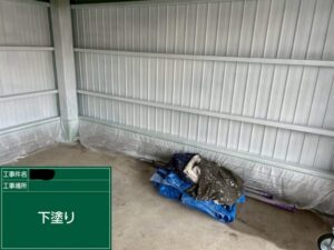 一緒に倉庫の中の壁や鉄骨の塗装もおこないましたが、こちらも最初に錆止めをぬらせていただいています。