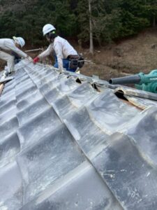 そこで今回は、既存の棟瓦を一度解体し、葺き土を使用しない軽量仕様の棟へと改修する工事をご提案いたしました。