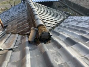 瓦自体には大きな問題は見られませんでしたが、このまま放置すると棟の崩れや雨水の侵入につながる可能性があり、早めの対応が必要な状況でした。