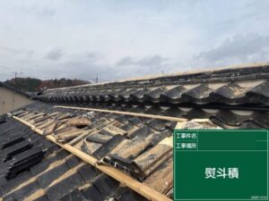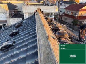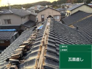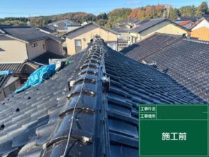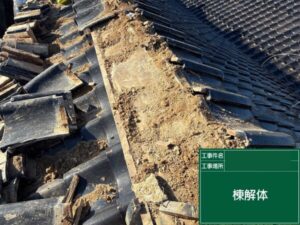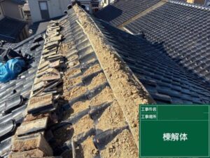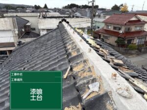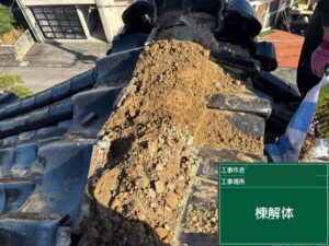 棟部分の瓦を一度撤去し、積み直しをさせていただきます。