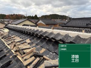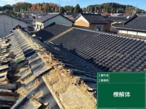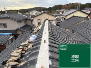 瓦屋根の頂上部分にある棟瓦といわれる部分が崩れてしまったそうです。