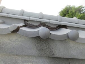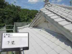 現地調査を行うと、セメント瓦特有の色褪せや汚れの付着が広範囲に見られました。大きな構造的問題はありませんでしたが、一部補修が必要な箇所が確認できたため、部分補修を行ったうえで屋根全体を塗装するご提案をいたしました。