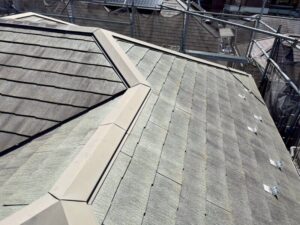 今回おこなう「カバー工法」では既存屋根は取り外さず、上から新しい屋根材を設置するのですが、棟板金の出っ張りがあると設置できないので、こちらは取り外していきます。