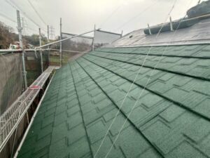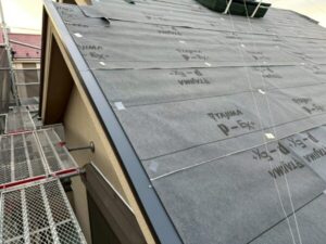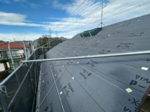 しかし、この度は元の屋根のままでカバー工法の土台として十分でしたため、このままルーフィングシートを敷設することに。