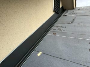 こちらのお写真は、外壁との接合部にある雨押え板金と、屋根のハノ字のフチにありますケラバ板金周辺です。