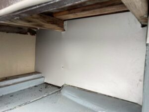 施工前、屋上との隙間には構造木材が露出しているにもかかわらず、板金で保護されていないため雨水が外からも入り込み、ダメージを受けてしまう状態でした。
