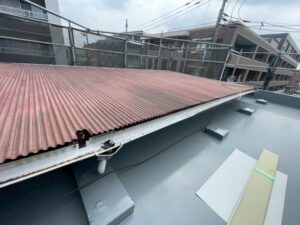マンションの屋上部分の、トタン屋根の部分から雨漏りしているとのお問い合わせでした。