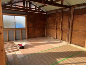お話を伺うと、「古くなってボロボロになった納屋をきれいにしたい」とのことで、現地確認をすると、経年劣化が進み、外壁や内装は全面的な改修が必要な状態でした。