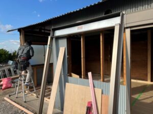 お客様のご要望は、「中を二つに仕切り、それぞれに出入り口を設ける」「シャッターを新設と窓の増設」という内容でした。