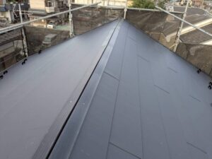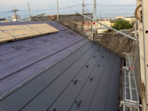 新しい屋根材は「横暖ルーフ」を設置しています。