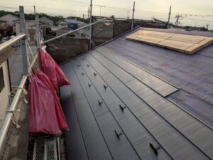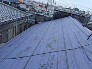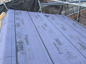 捲れやひび割れなど、屋根の劣化が激しい状態でしたので、屋根の上から新しく防水シートと屋根材を設置させていただきました。