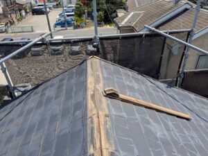 頂上部には新しい貫板と棟板金を設置いたしました。
