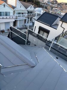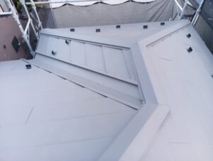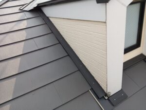 屋根の頂上部分や、壁との結合部部は、隙間ができ、雨水が侵入しやすい部分ですが、その部分には専用の役物板金を設置します。