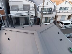 耐用年数も経過していましたので、既存屋根の上から新しい屋根材を設置する「カバー工法」での屋根修理を提案させていただきました。