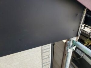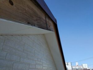 風が強かった日に屋根のすぐ下、側面部分「破風」に取り付けられた板金が外れてしまったとのことで、お問い合わせをいただきました。