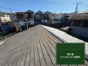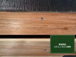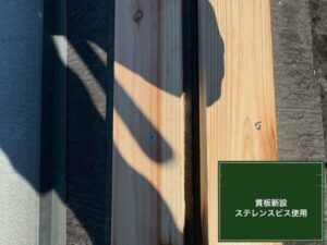 棟板金の浮きがあるとのことでしたが、大きな損傷が発生する前にメンテナンスをしていただいたことで、貫板の交換と、ステンレスビスの使用のみで補修させていただくことができました。