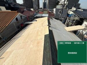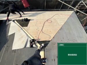 太陽光パネルを設置する前にメンテナンスをしておきたいとのことでしたので、下地の野地板から新しくさせていただきました。