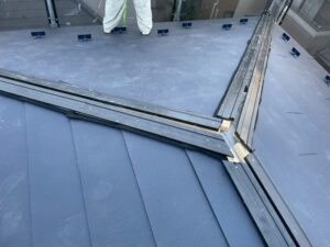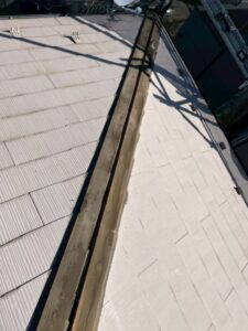 棟板金同士の繋ぎ目の部分には、養生した上でシーリング材を入れさせていただきました。