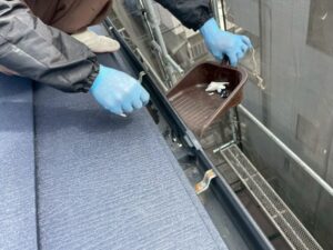 ごみくずなども溜まっておりましたので、清掃をおこなったうえで雨樋の交換をおこなっていきます。