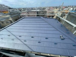 こちらには最新の屋根材「スーパーガルテクト」を使用させていただきました。