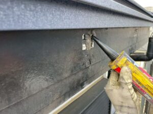 金具を外したあとの釘穴などは、雨水が入り込まないよう、シーリング材を使って埋めています。