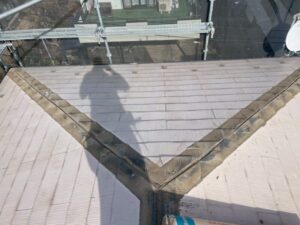 こちらのスレートの屋根ですが2004年よりも前に建てられたお住まいで、健康被害を引き起こすアスベスト(石綿)が使用されていました。
