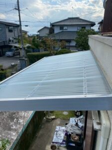 塗装メンテナンスも考えておられたのですが、既存スレートの耐用年数的にもカバー工法が最適だとご提案し、横暖ルーフsにて施工いたしました。