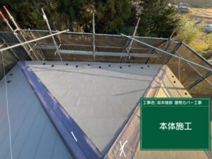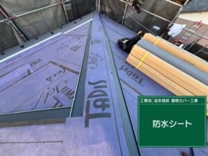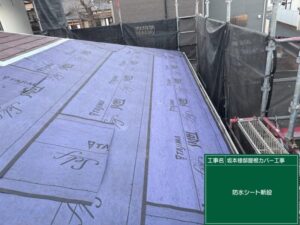 カバー工法において、既存屋根に初めに取り付けるのは防水シートです。