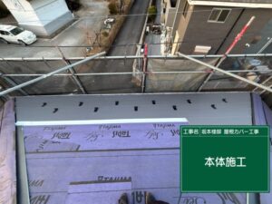 板金は、そのいくつかは屋根材より先に取り付けるものもあり、軒先につける板金はその一例です。