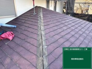 屋根材の状態を見ても、かなり傷んできていることが明らかです。(写真は板金類を撤去したあとです)