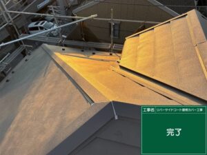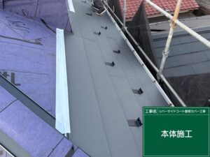 こうすることで、棟から流れてきた雨水が、継ぎ目に引っかかることなくサラサラと流れていく構造に。