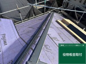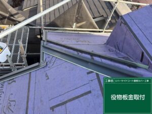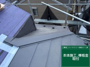 こういった、棟が複雑な時に特に気を付けている点として「捨て板金」の確実な施工があります。