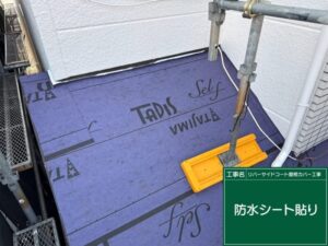 外壁との取り合い部も、防水シートを多めに敷き込んで仕上げております。